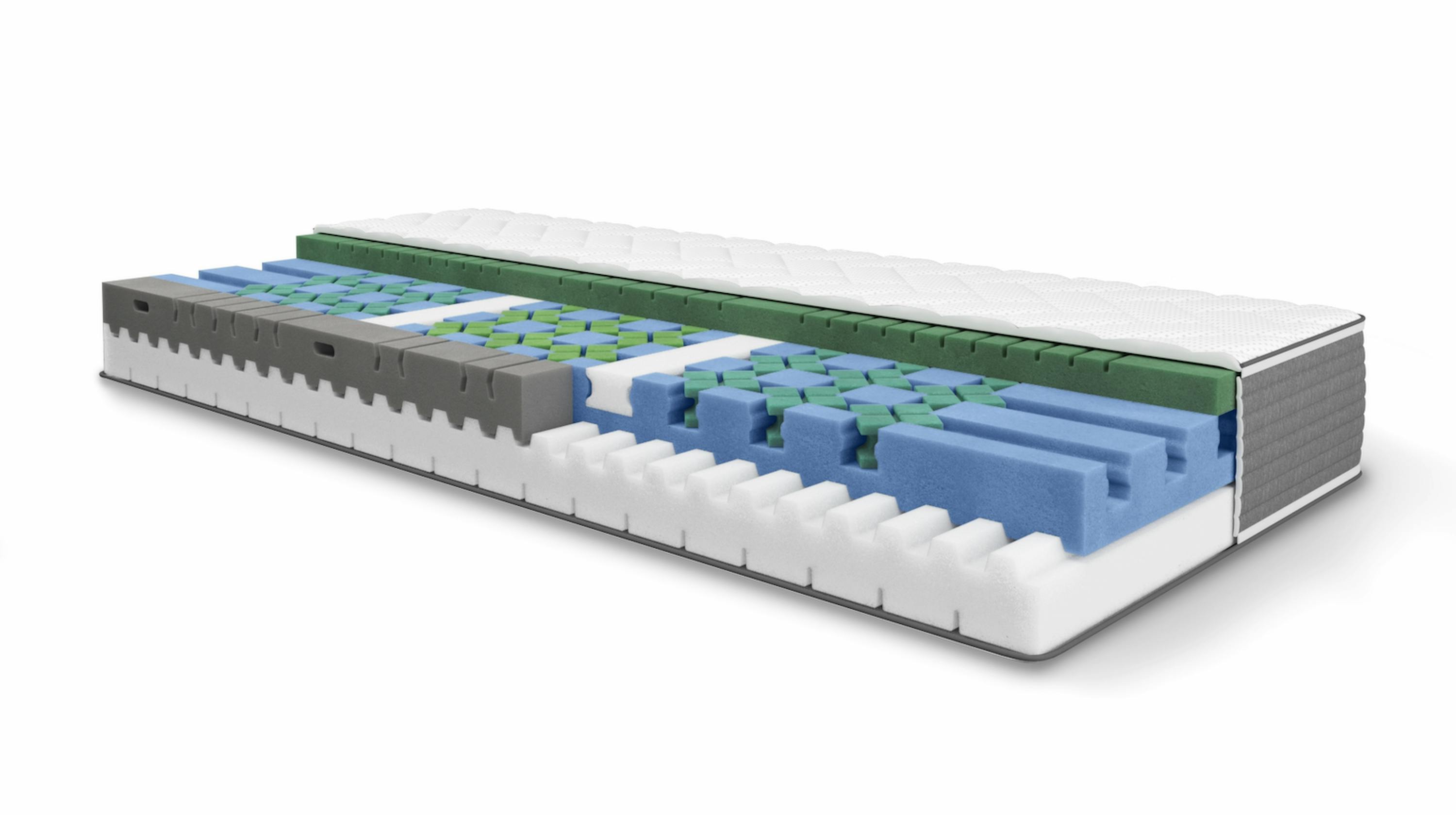 - Schulterzone: Kernschnitt und besonders weiche 3D-Schaumfedern im Schulterbereich sorgen für ein tiefes Einsinken