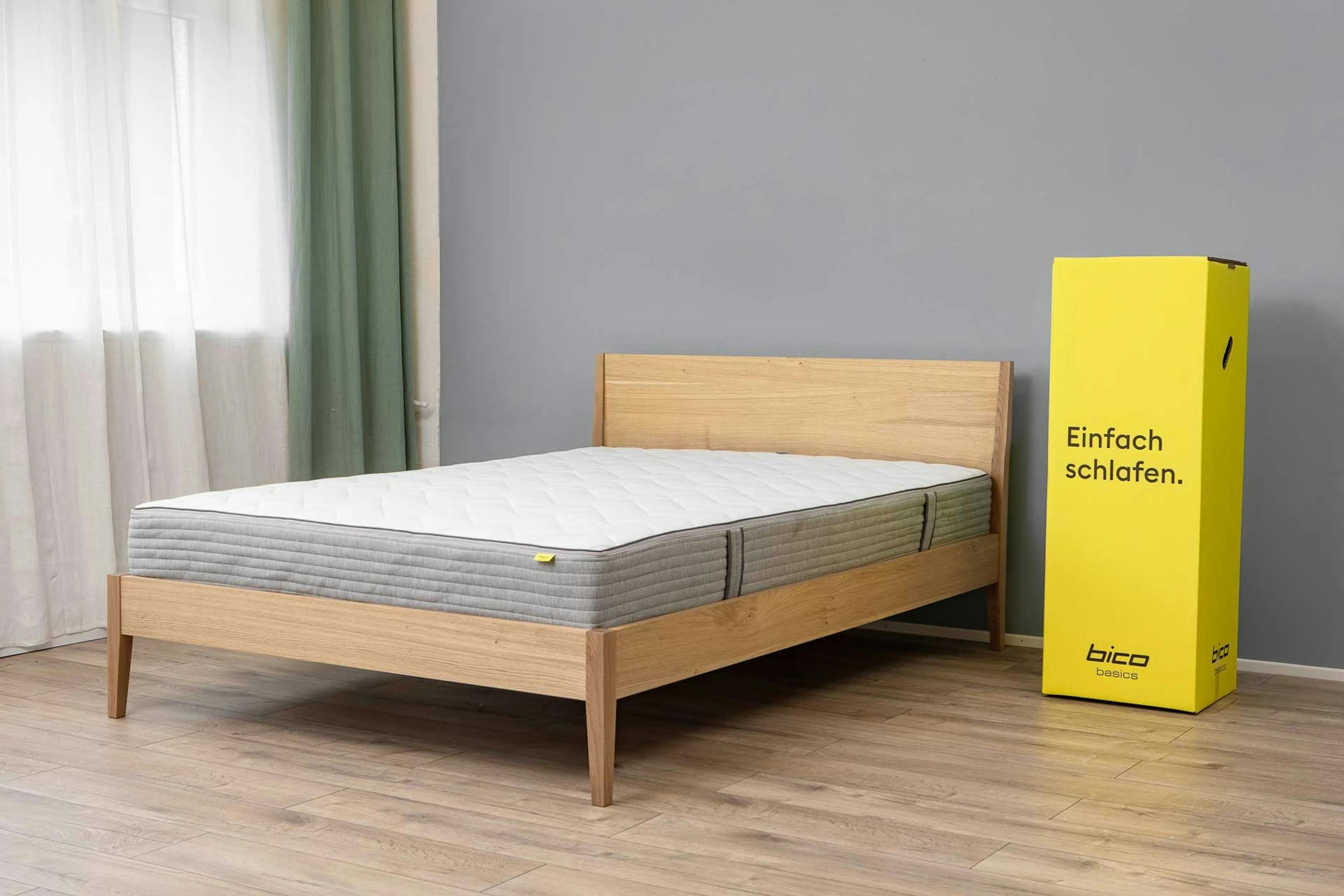 Mit der BICO basics Matratze machst du es dir besonders leicht. Die vakuumierte Rollmatratze wird kompakt in einer stabilen Kartonbox geliefert. Dort angekommen öffnest du einfach die Box und nimmst die Matratze heraus. Innerhalb weniger Sekunden löst sich das Vakuum, und deine neue Matratze beginnt sich langsam zu entfalten. Jetzt braucht sie nur noch etwas Ruhe: Nach etwa drei Stunden hat sich die Matratze vollständig entfaltet und ist bereit für gemütliche Entspannung.
