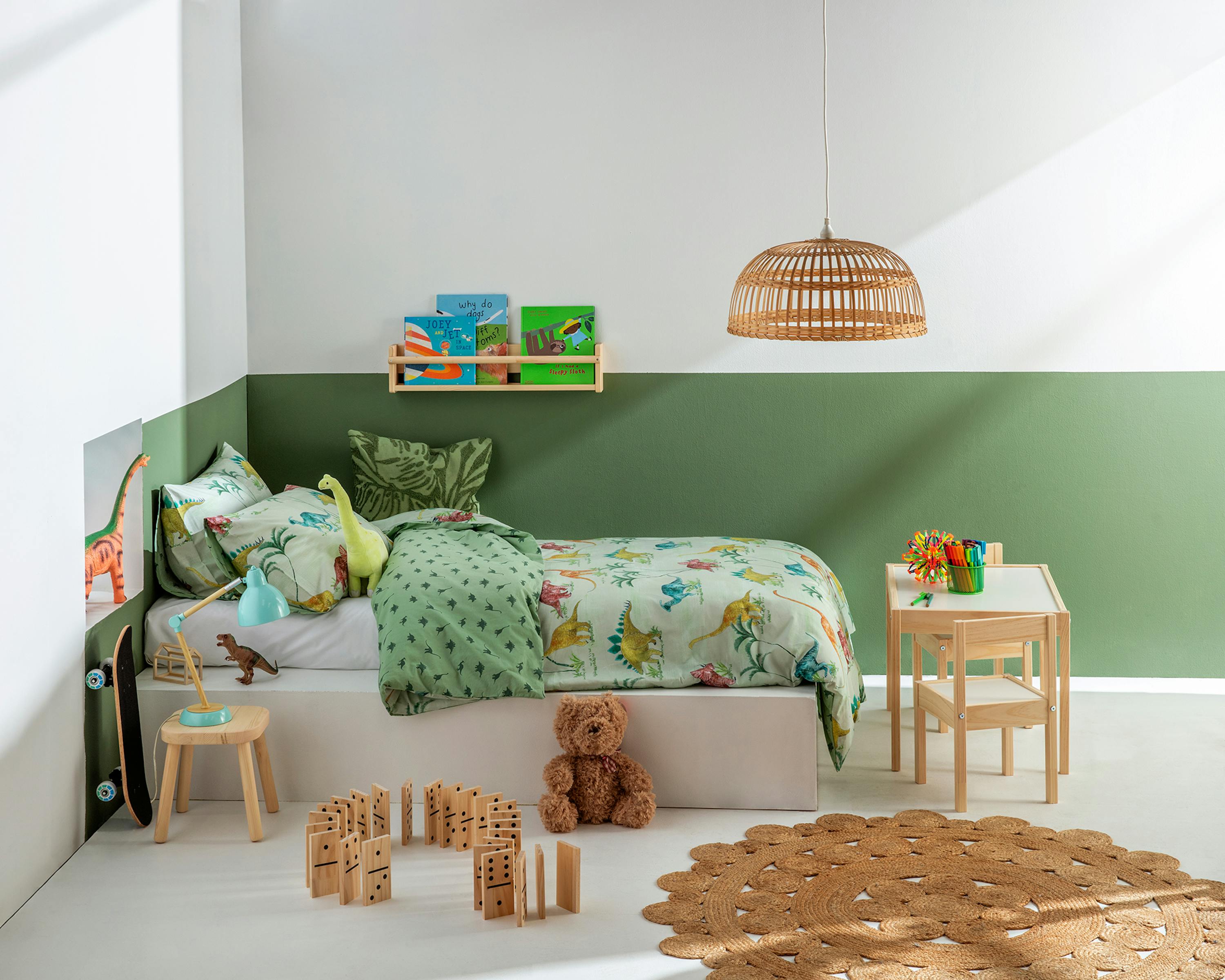 Reissverschluss auf, Decke rein, zu – fertig! Das Beziehen der Dinosaurier-Bettwäsche von KAS geht ruckzuck und stressfrei. Und auch um das Wohl deines Kindes musst du dich nicht sorgen. Die Dino-Bettwäsche ist Oeko-Tex Standard 100-zertifiziert und lässt sich in der Waschmaschine waschen und anschliessend tumblern.