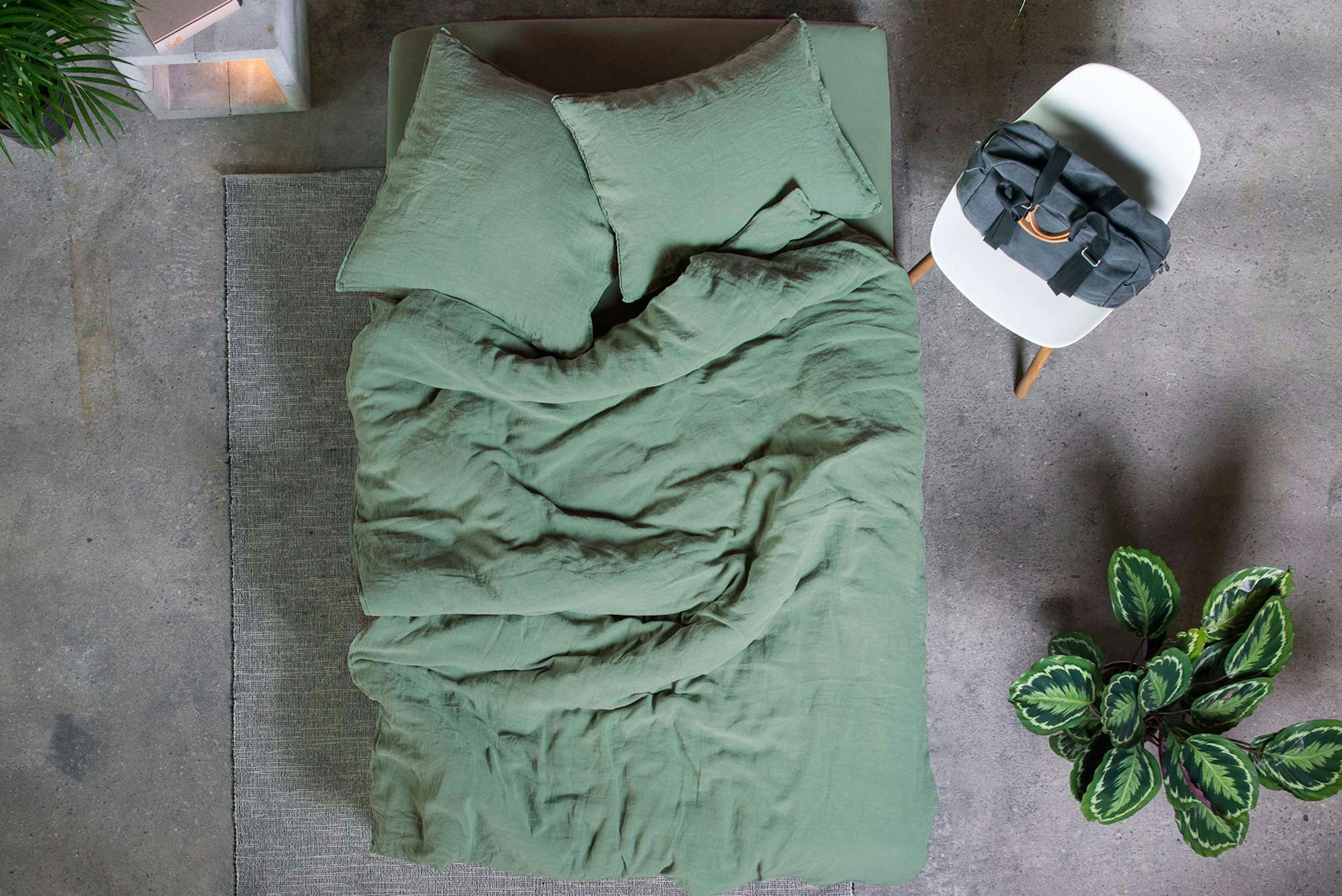 - Bettwäsche auf die Innenseite wenden und alle Verschlüsse schliessen. Weisswäsche von farbigem trennen und sicherstellen, dass farbiges Leinen ohne Bleichmittel gewaschen wird.