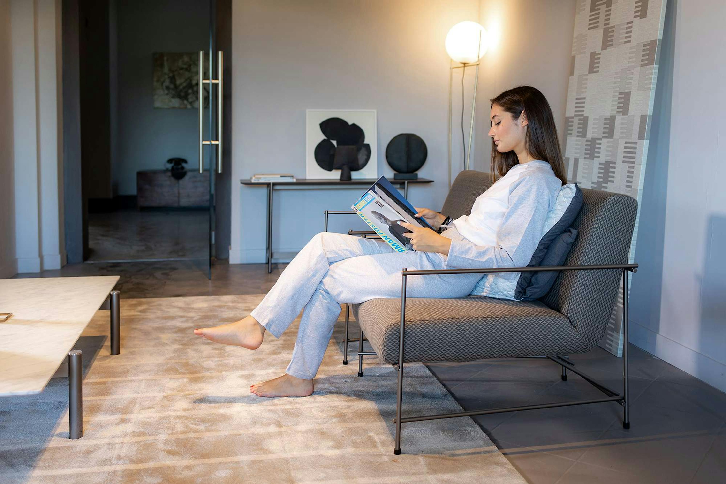 Im Spezialkissen von Lotus kommt ein hochwertiger und weicher Schaumstoff zum Einsatz. Dank seiner druckentlastenden Eigenschaften wird die Durchblutung des Körpers gefördert und eine noch kuscheligere Atmosphäre geschaffen. Das Lagerungskissen passt sich der Körperkontur an und lässt sich mit der praktischen Faltfunktion in die gewünschte Position bringen.