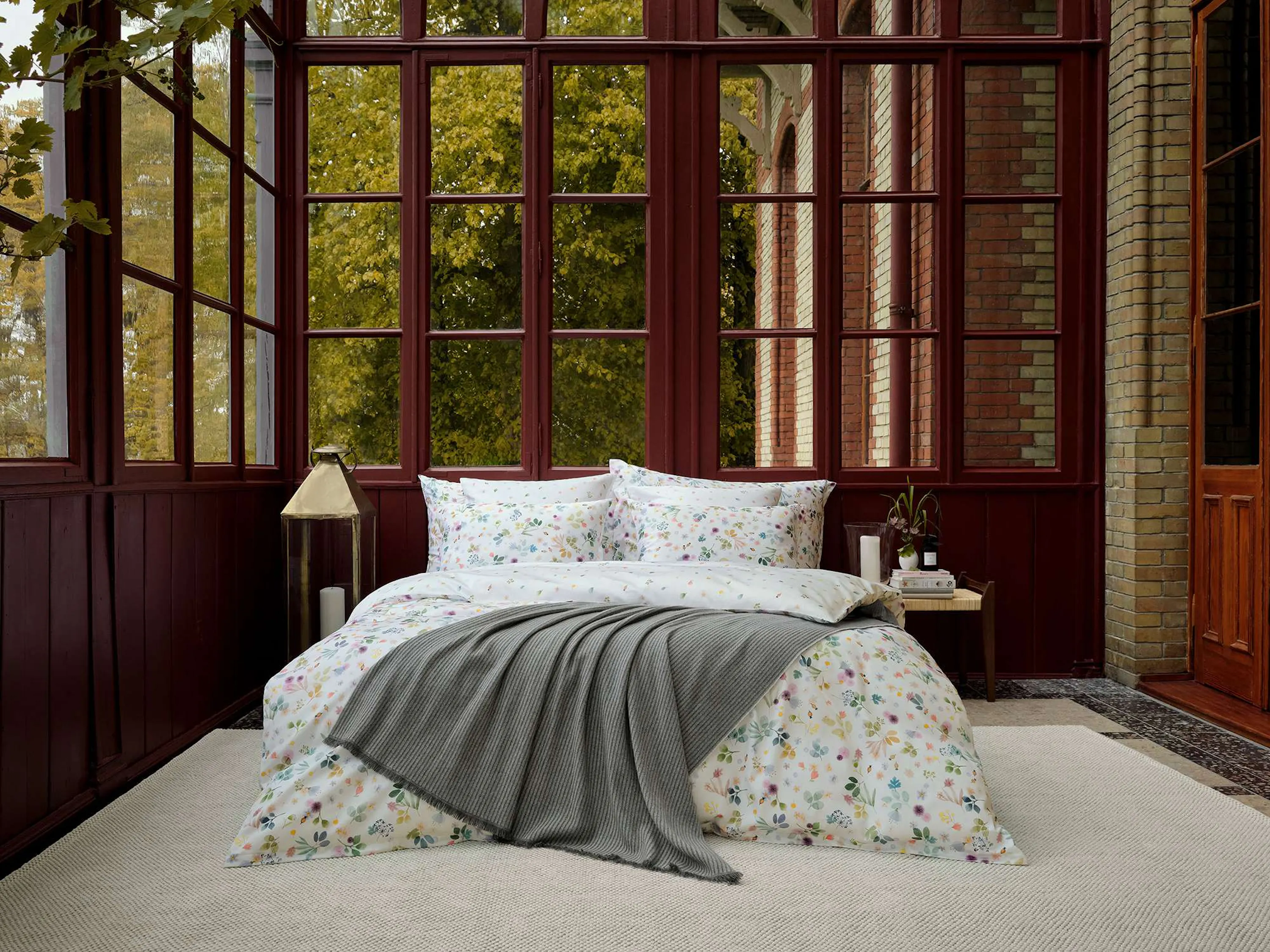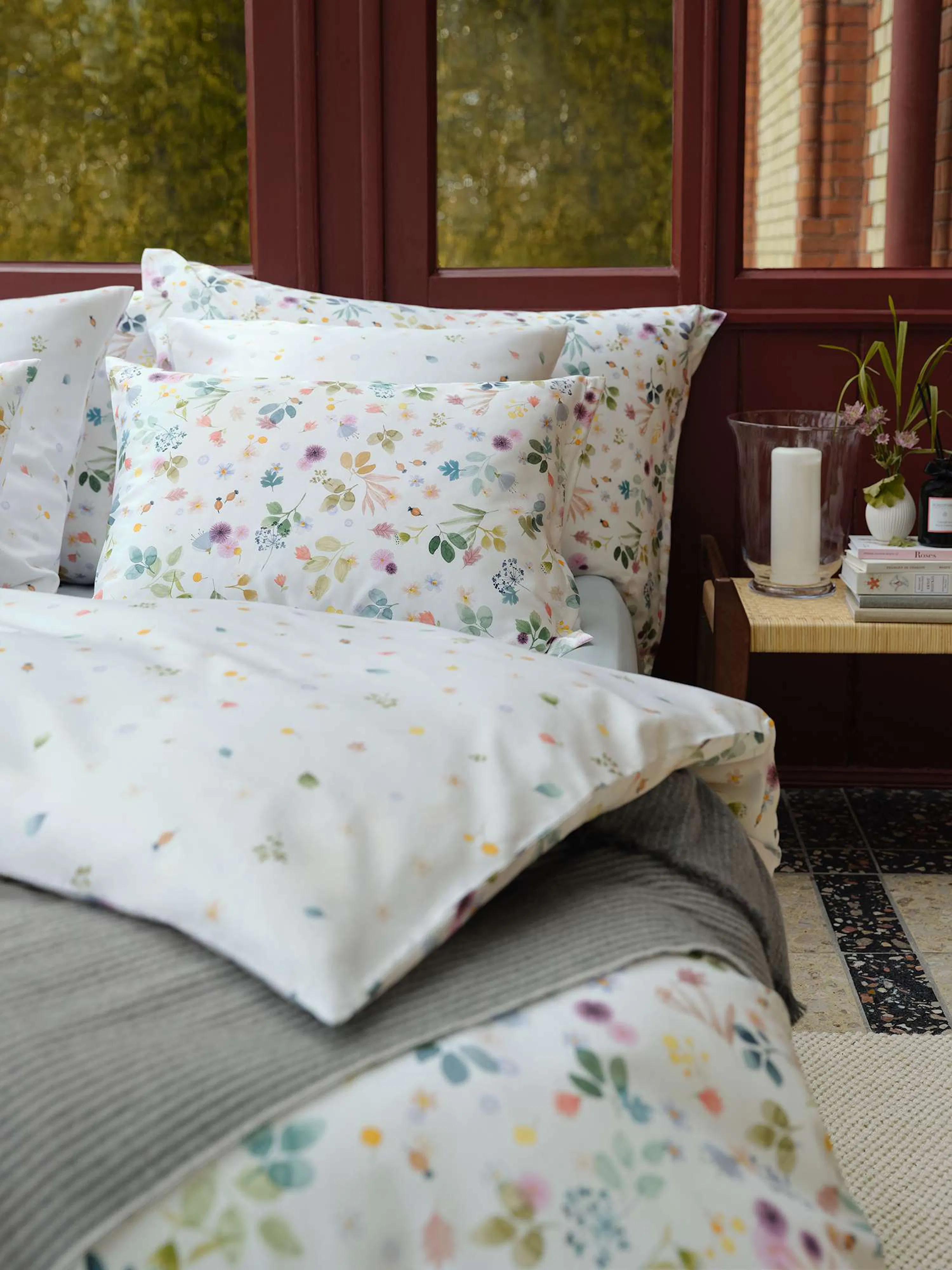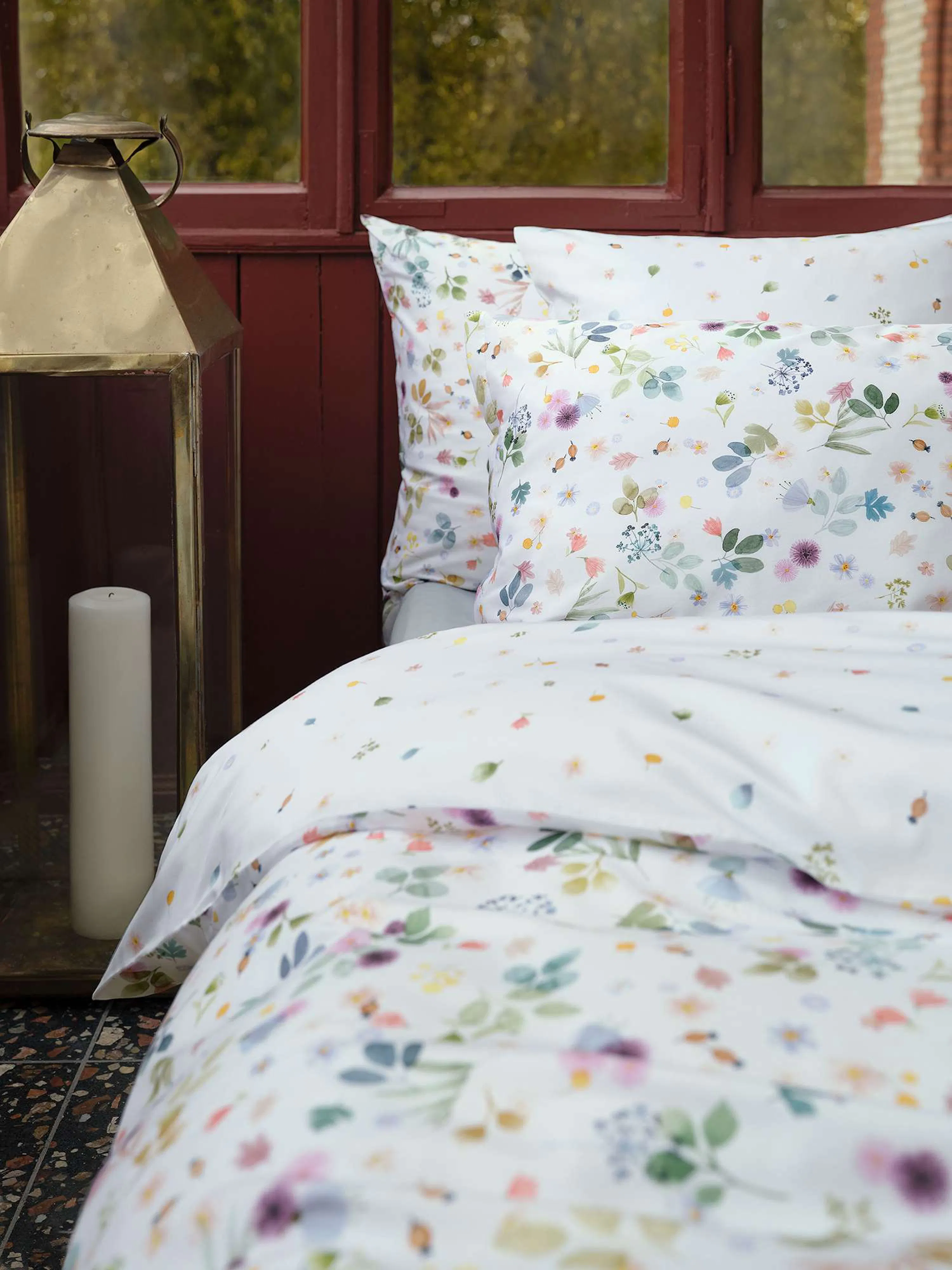 Warme, herbstliche Farbtöne mischen sich mit frischen Farbakzenten auf der Schlossberg Bettwäsche ASTA und vereinen sich zu einem herbstlichen Reigen voller Leichtigkeit. Ein verspielter Laubtanz aus Blüten und Blättern, der mit dem Wind im Rhythmus tanzt und so seine ganz eigene Wirkung zeigt. ASTA zeichnet sich durch einen stilisierten, reduzierten Aquarell-Malstil aus und ist mit Farbstift um liebevolle Details ergänzt.