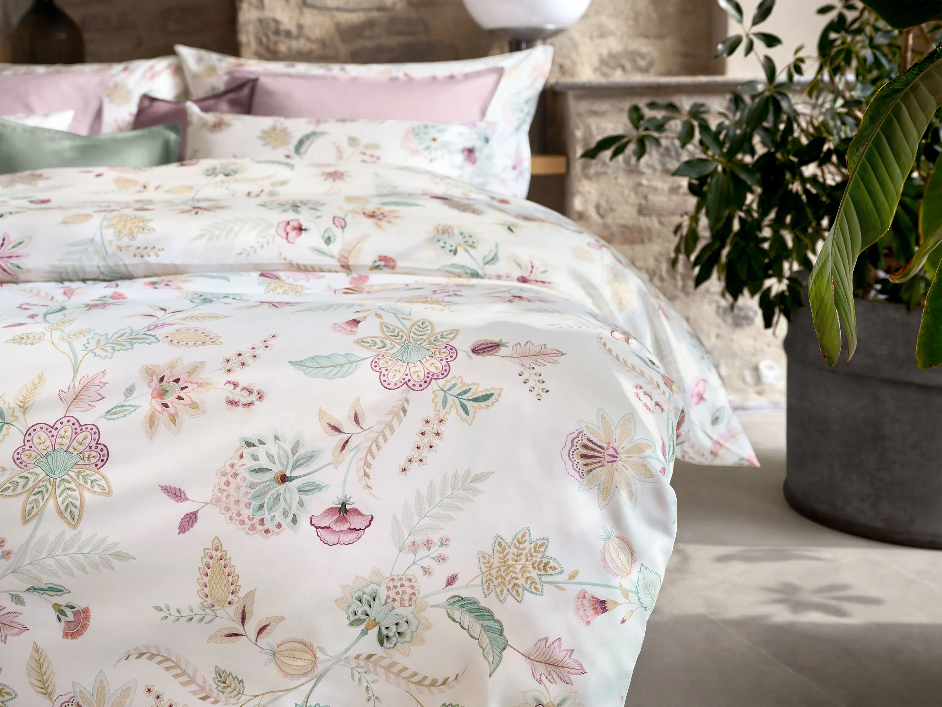 IMA begeistert mit einem lebendigen, kunstvollen Muster, das deinem Schlafzimmer im Handumdrehen Persönlichkeit verleiht. Die harmonische Farbwelt wirkt modern und zugleich zeitlos – perfekt für alle, die das Besondere lieben. Schlossberg steht seit Jahren für aussergewöhnliche Designs mit viel Liebe zum Detail. Genau das spürt man auch bei dieser Bettwäsche: kreativ, hochwertig und stilvoll. So wird dein Bett zum absoluten Blickfang.
