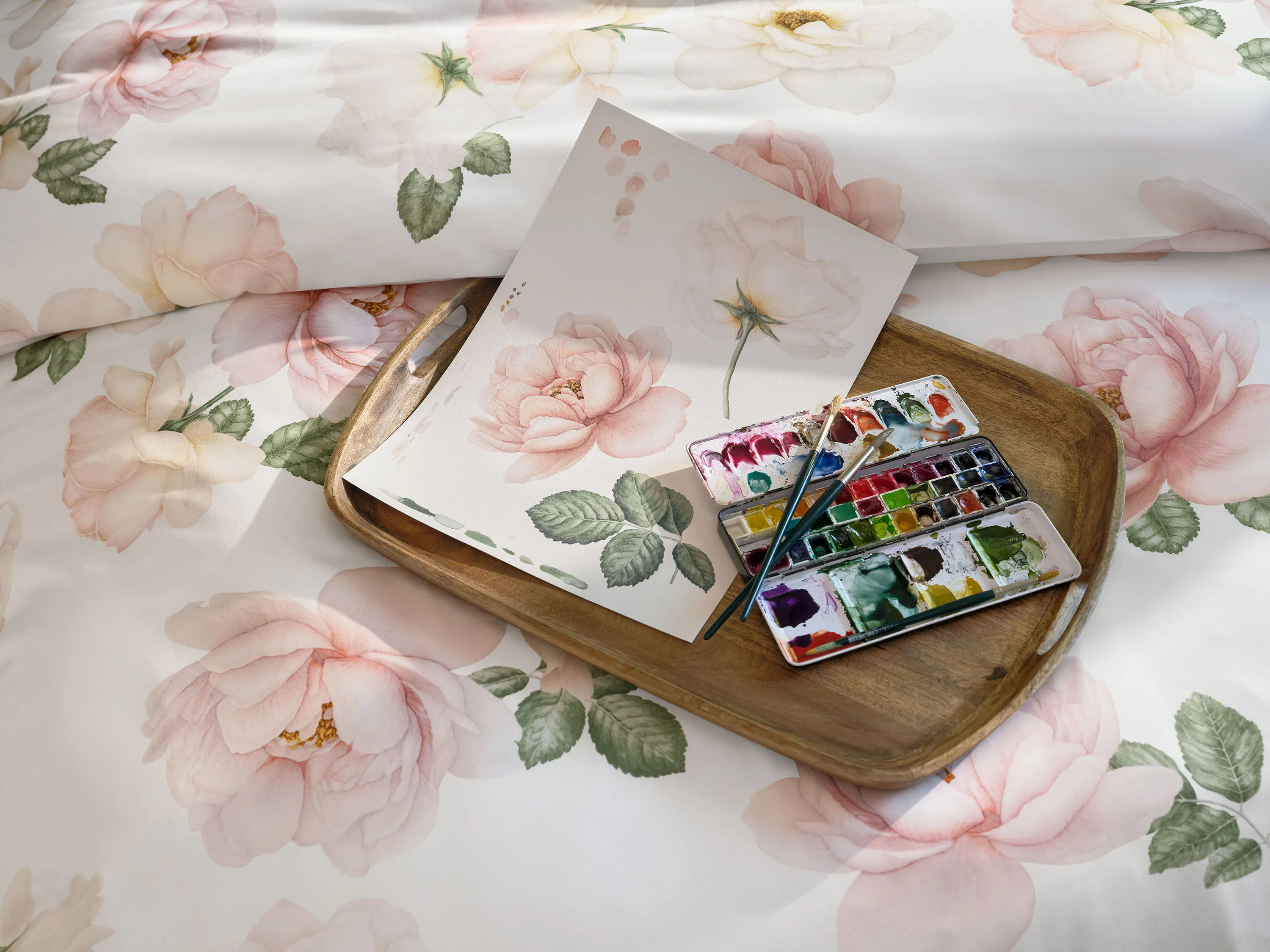 Die Rosenbettwäsche von Schlossberg begeistert mit einem kunstvoll inszenierten Blumenmotiv, das zeitlos und dennoch modern wirkt. Die harmonisch abgestimmten Farben verleihen deinem Schlafzimmer eine sanfte und romantische Ausstrahlung. Schlossberg steht für detailverliebte Designs und höchste Druckqualität – genau das zeigt sich auch bei der Bettwäsche ROSE. Das florale Muster wirkt lebendig und gleichzeitig stilvoll zurückhaltend. So entsteht ein Look, der Ruhe und Ästhetik perfekt miteinander verbindet.