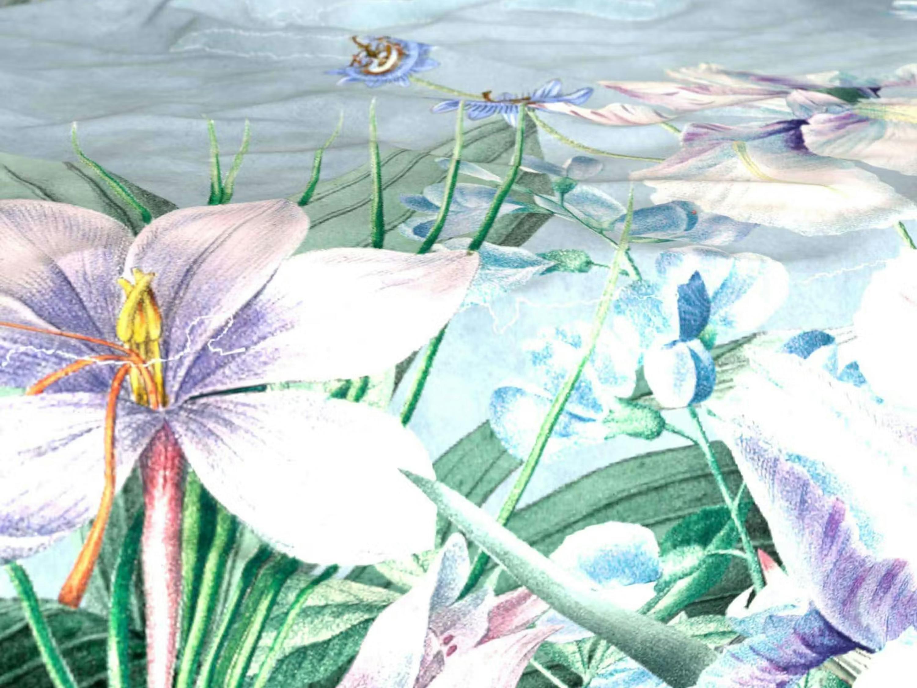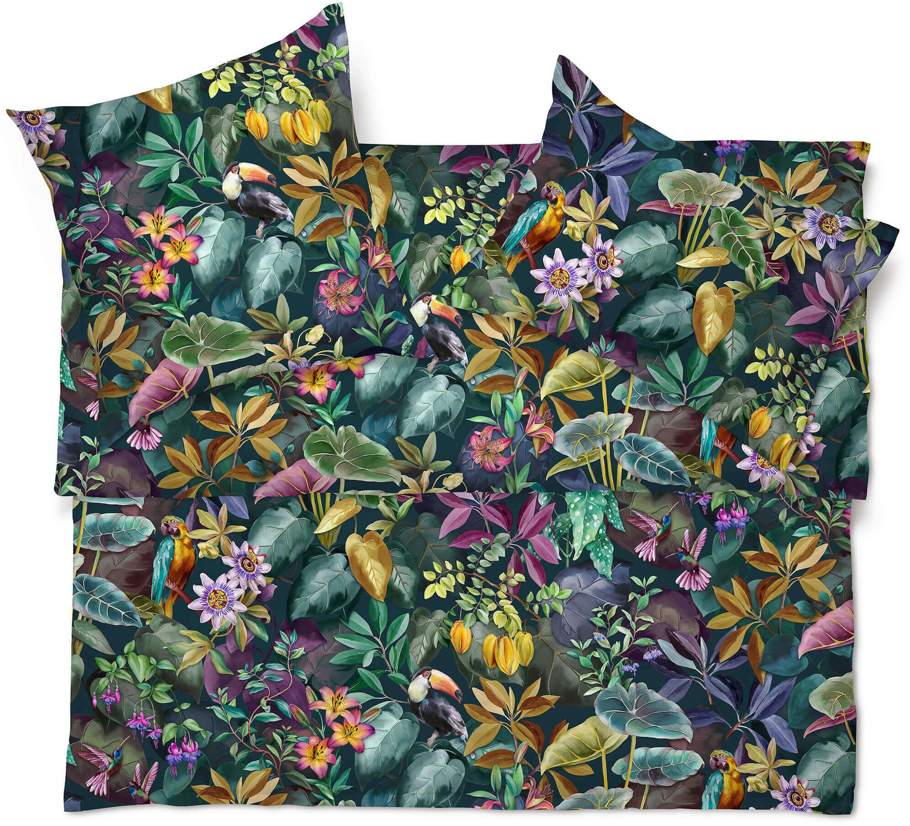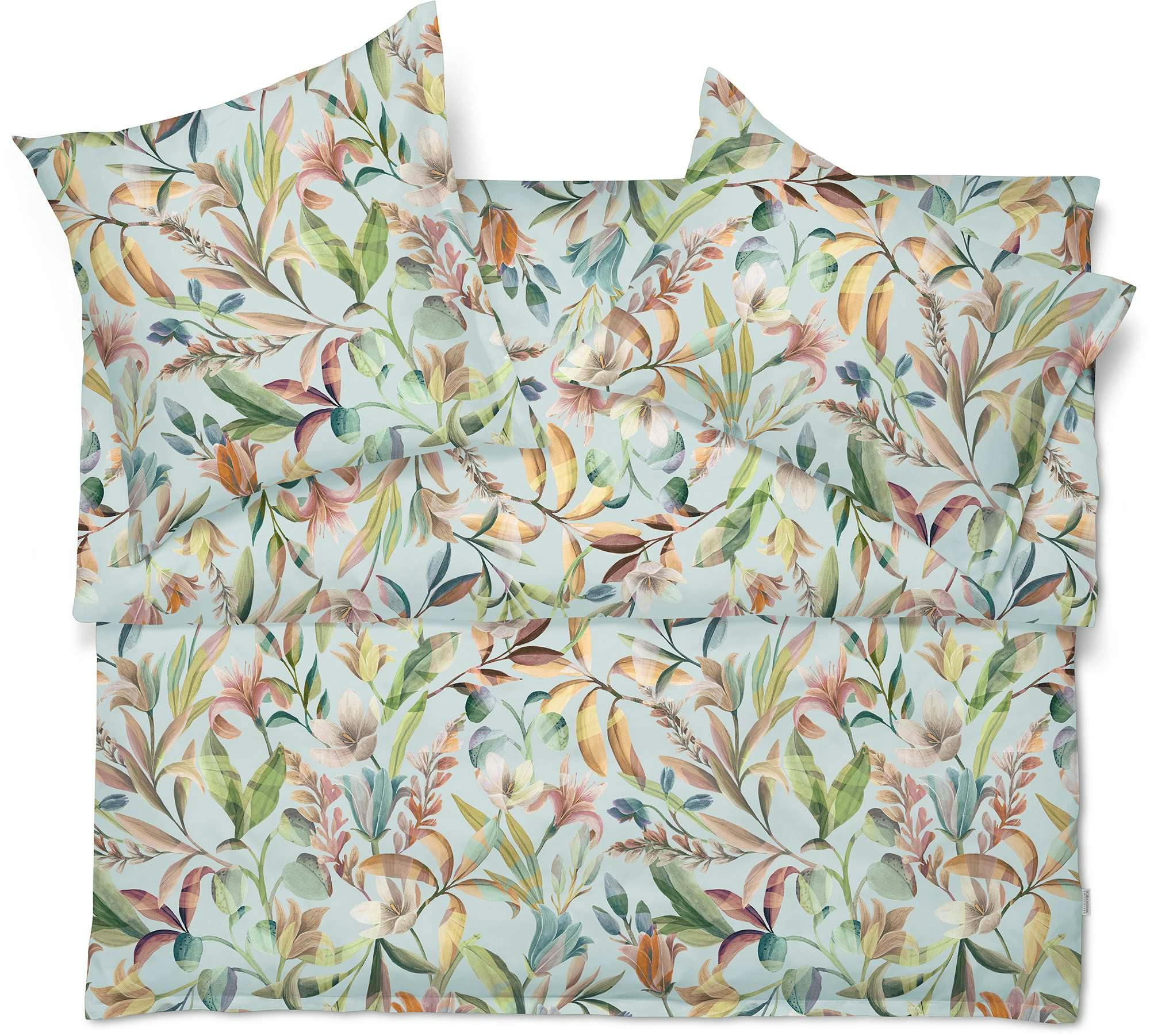 Scheint dieser feine Strauss an Blüten und Blättern im ersten Moment zufällig über den reinweissen Satin gestreut, bildet sich beim nächsten Windstoss schon ein herbstlicher Reigen, der an die Leichtigkeit des Spätsommers erinnert. Die verspielte Schlossberg Wende-Bettwäsche YLVIE ist zum Teil ganz der Fantasie entsprungen, zum Teil angelehnt an die Natur.