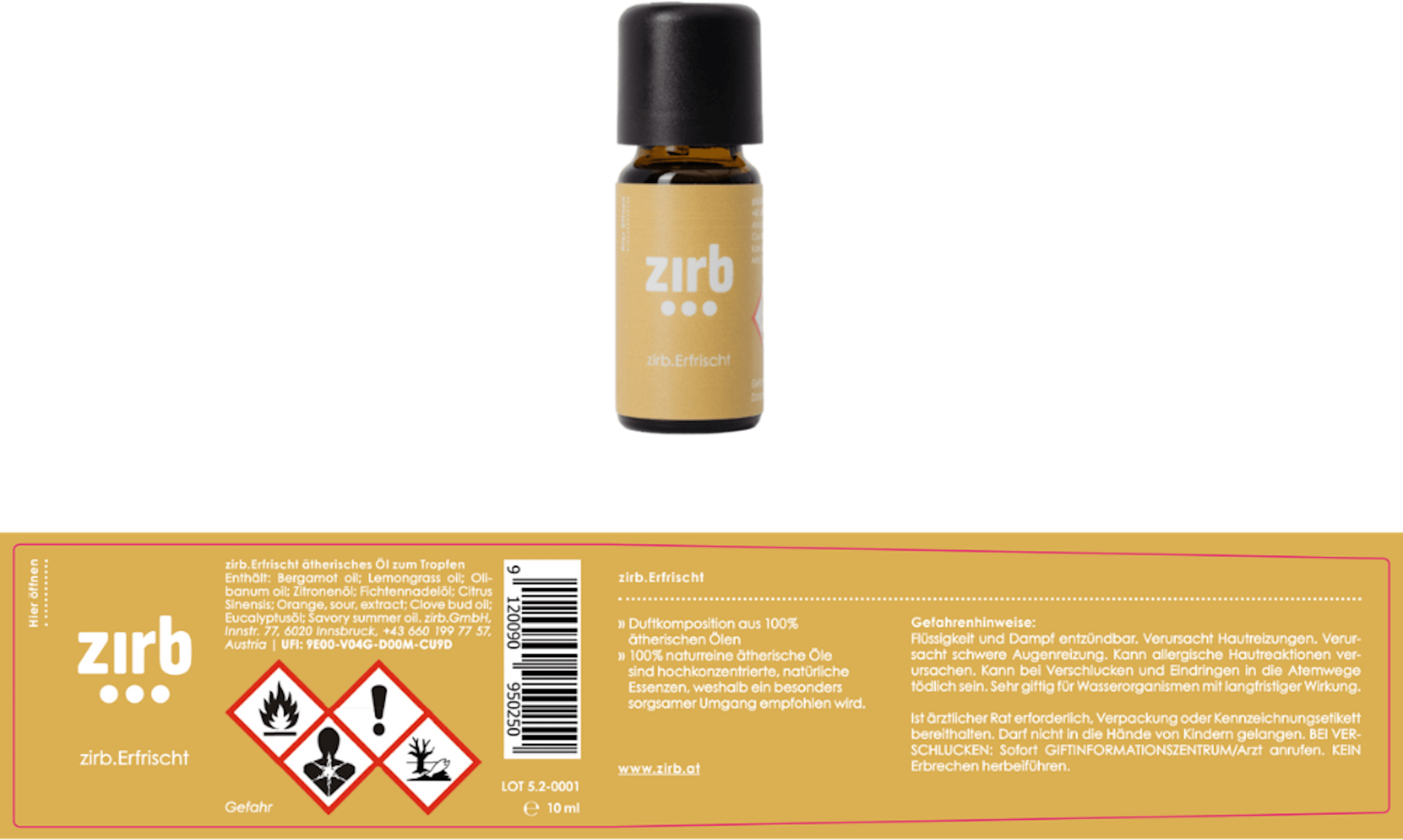 - Duft: zirb.Erfrischt (Zitrus / Kräuter / Weihrauch)